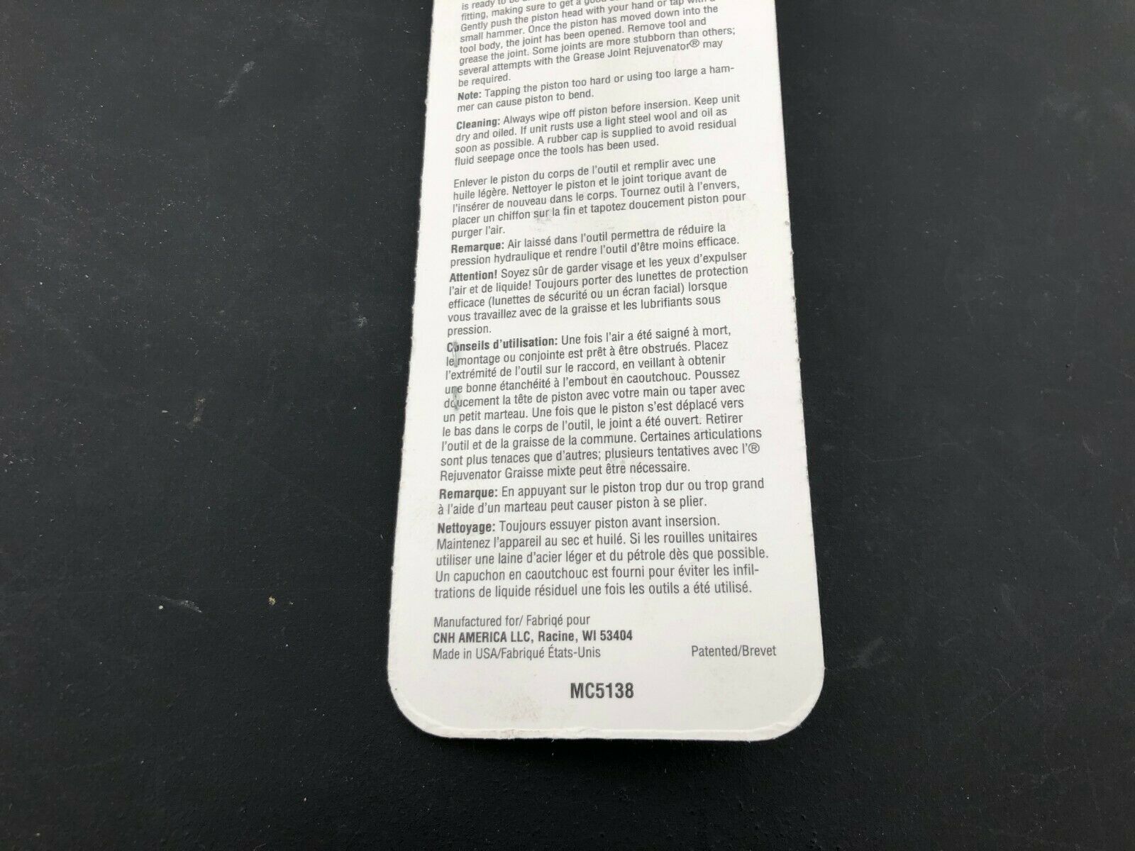 Case IH New Holland Grease Zerk Rejuvenator Repair Tool Blue Point Snapon