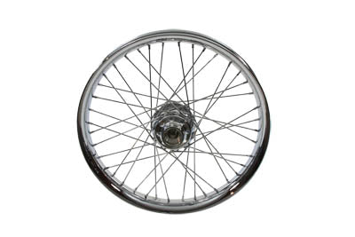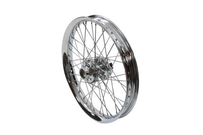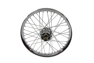 Chrome profile laced single disc front wheel with aluminum smoothie chrome rim, hub with 25mm bearings, and 40 chrome spokes.