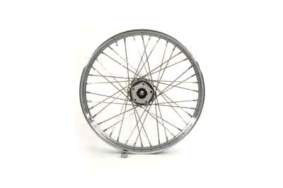 Features a Replica 21" x 2.15" chrome rim, a chrome hub with 3/4" bearings, and 40 stainless steel spokes.