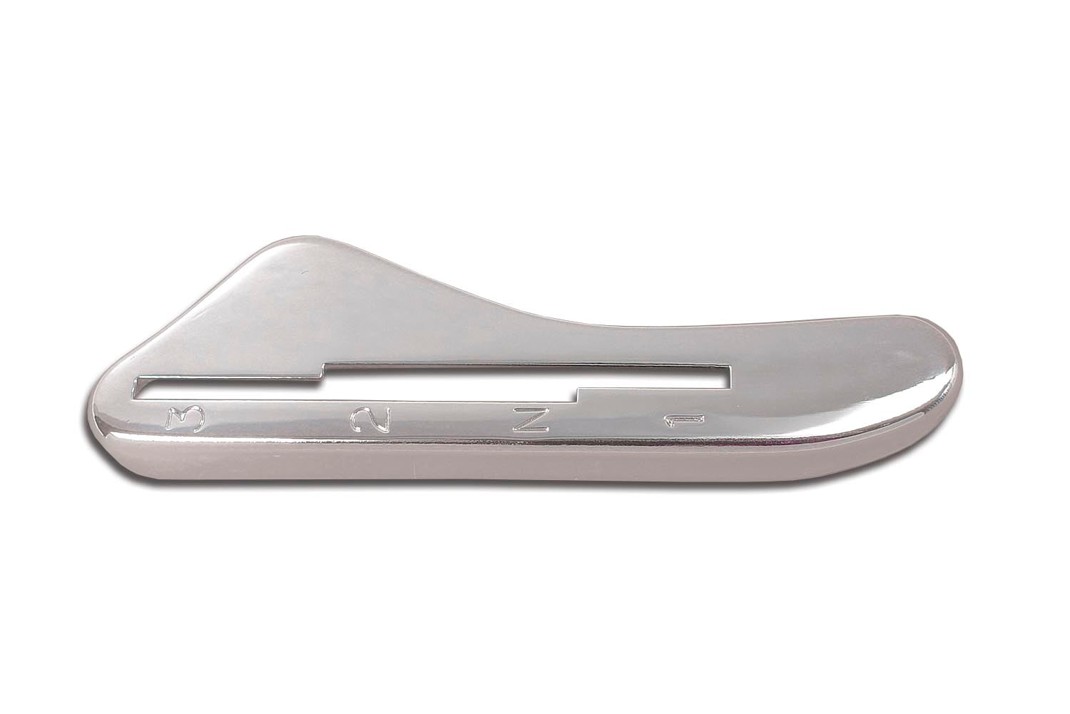 Chrome 3 speed left side hand shifter gate has a 32N1 shift pattern from front to rear.