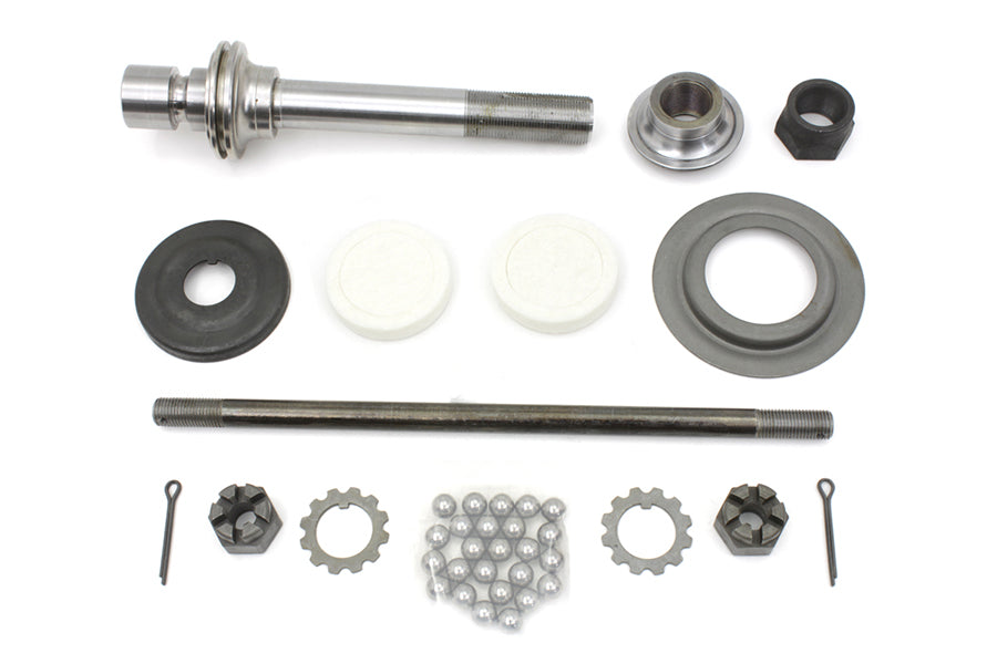 Front wheel hub kit includes race, ball bearings, and seal with spring fork front axle.