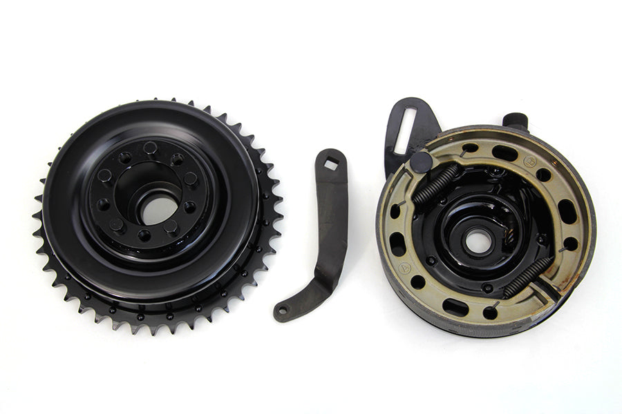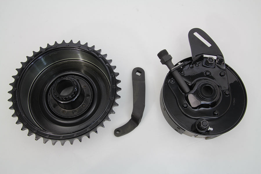 49-1875 - 45" Black Rear Brake Backing Plate Assembly 23-1017 - Rear Brake Drum Black with Sprocket |