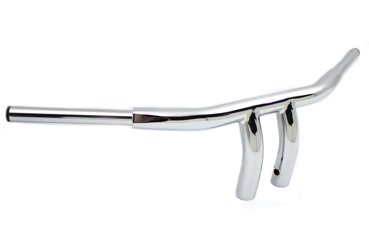 1-1/2" chrome handlebar has a 6" rise and a 3-1/2" bolt center for 1/2" x 13 thread.