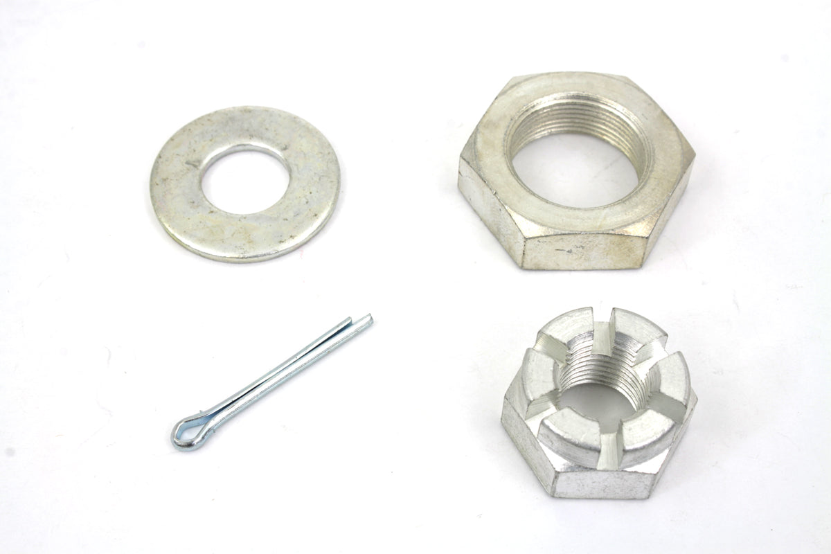 Front axle nut kit include sleeve nut, castle nuts and cotter pins.