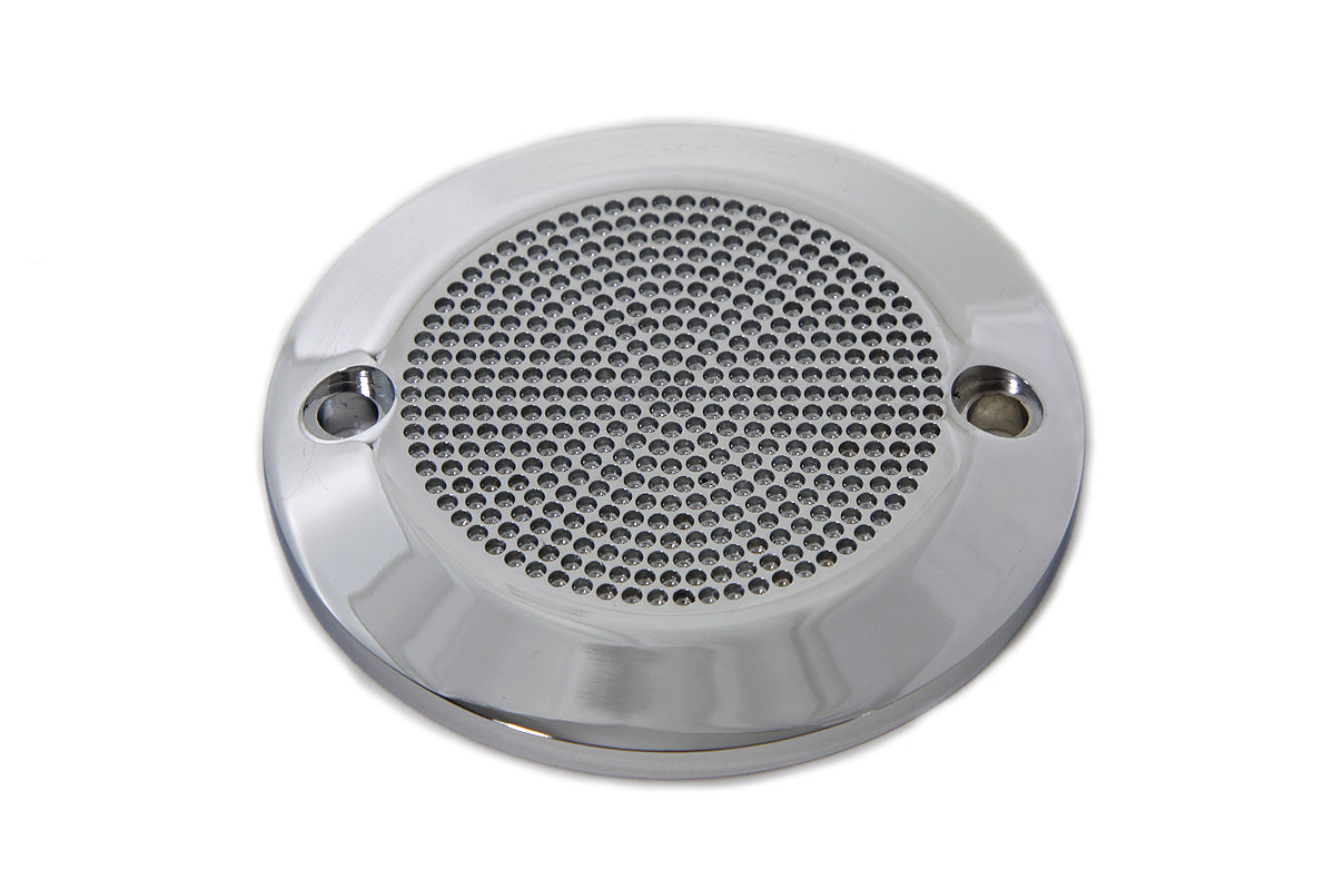Chrome 2-hole perforated ignition system cover can be mounted vertically or horizontally.