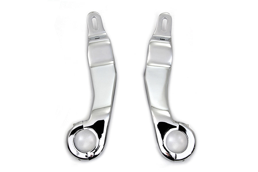 This chrome fairing support kit, precision made from forged aluminum, can be used as direct OEM replacement to form a seamless transition between the engine guard and fairing.