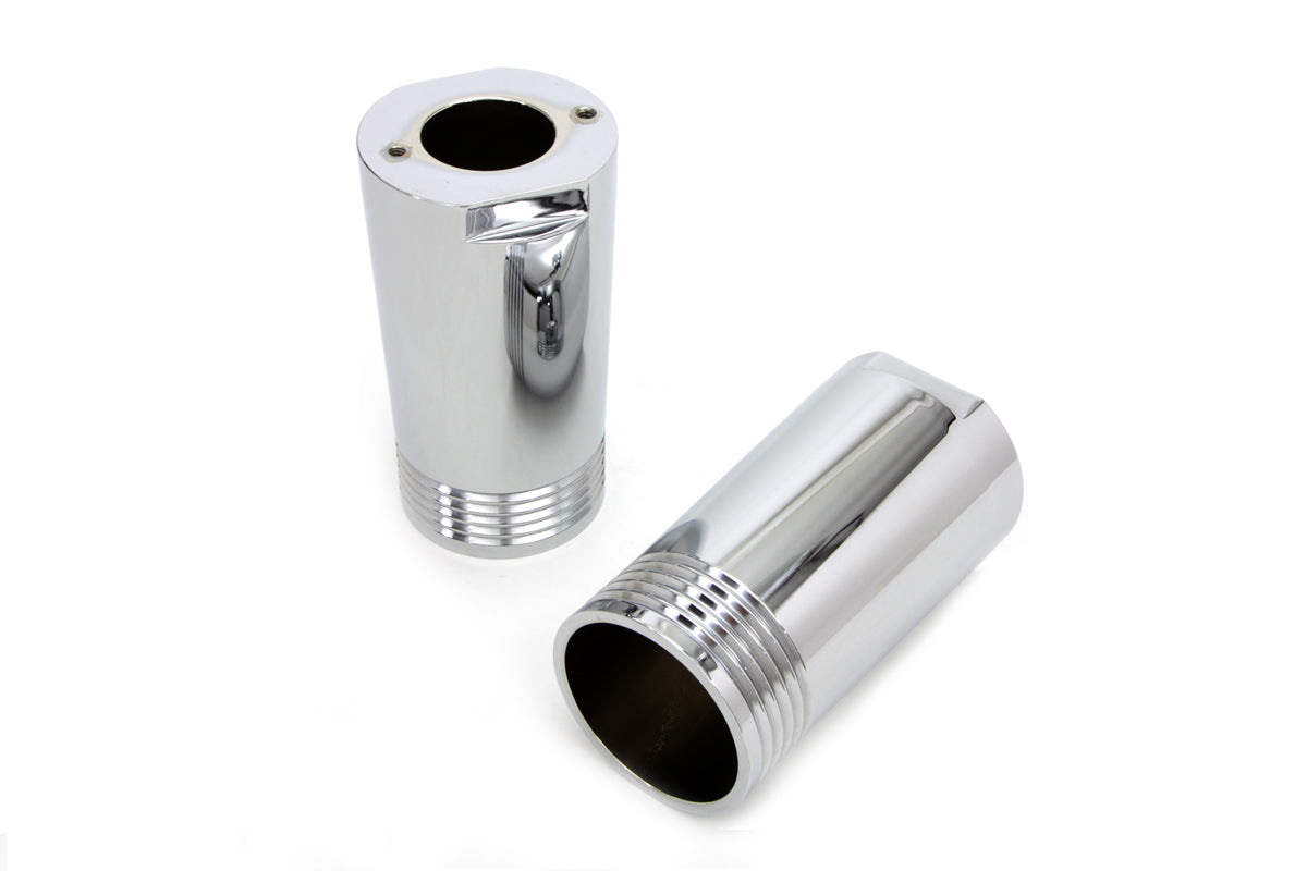 Chrome billet fork slider cover set is tapered with contrast rings.