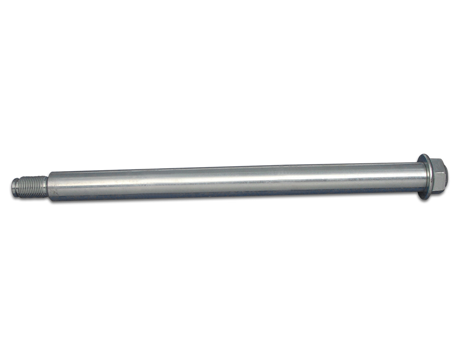 Chrome rear axle kit includes chrome axle with 13-3/4" bearing surface length, nuts, sleeves, and 2 spacers for belt drive applications.