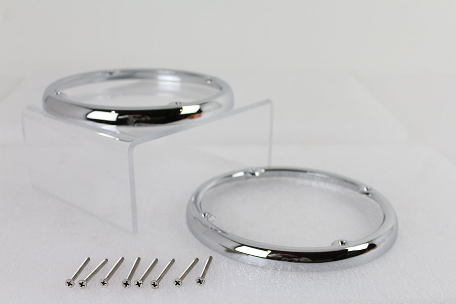 Easy to install chrome rear Tour-Pak speaker trim kit mounts directly over the stock speaker grills.