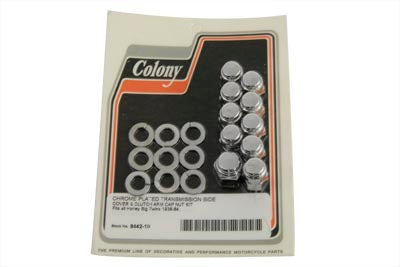 Chrome cap style kit includes transmission side cover and clutch arm nuts.