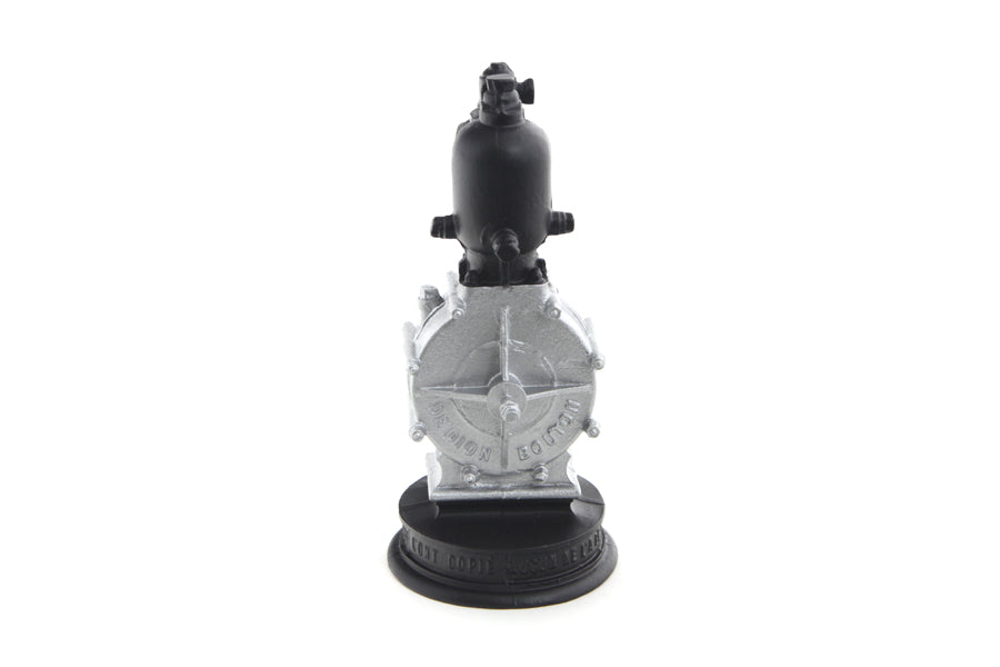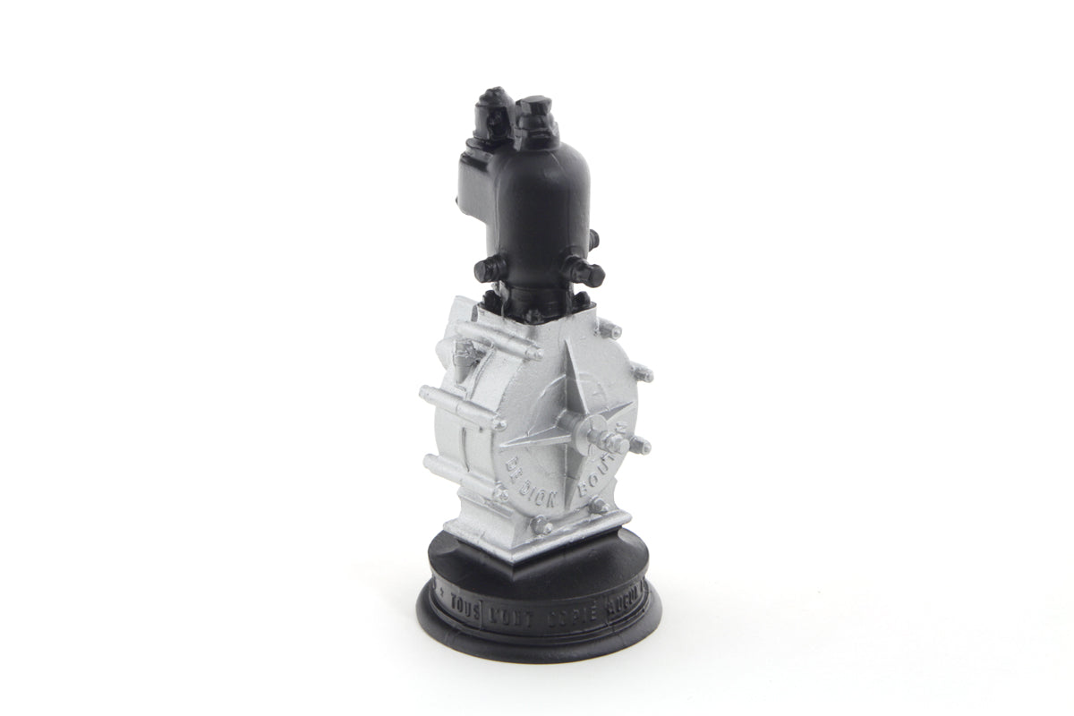 Model of a De Dion Bouton engine. The one cylinder engine is finished in silver patina over pewter.