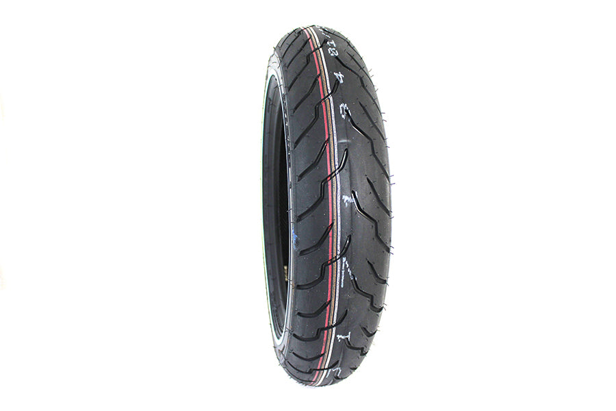 Dunlop American Elite MT90B16 narrow white stripe front tire.
