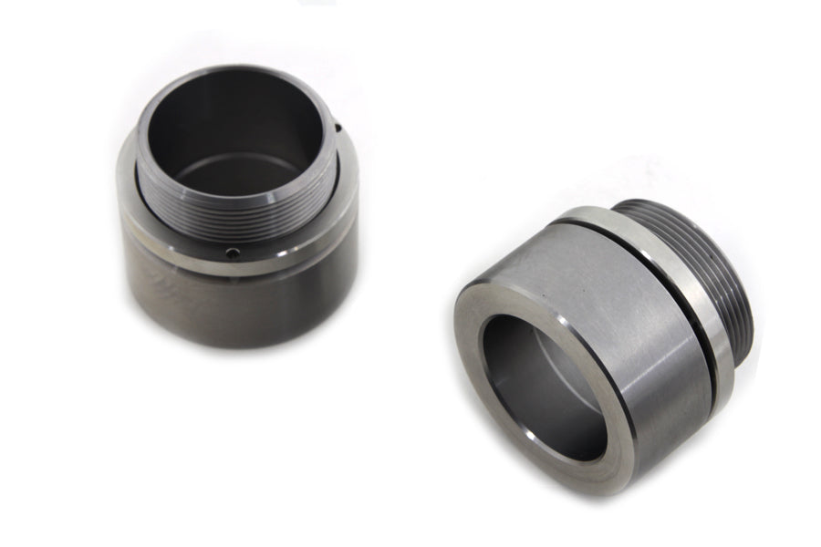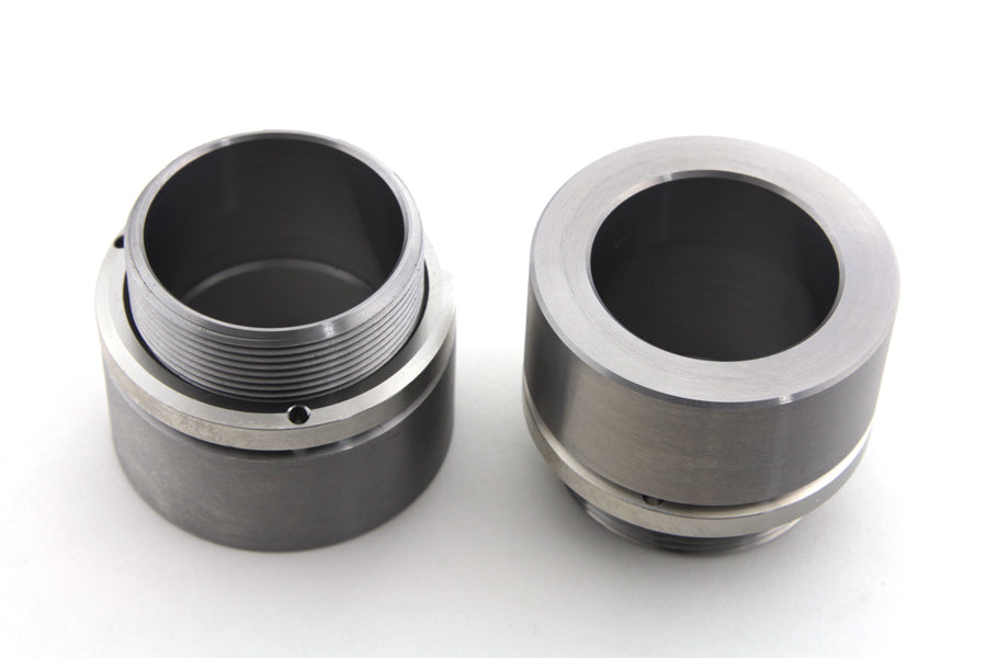 These stainless threaded collars with lock rings attach the fender to the spring fork rockers.