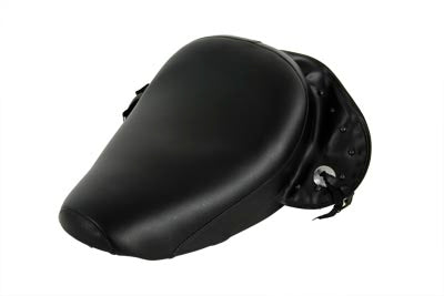 Classic style frame mount solo seat is constructed of black naugahyde on steel baseplate for frame mounting without springs.