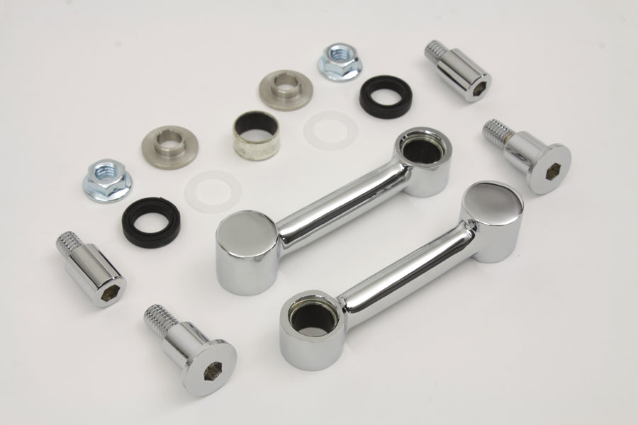 Order fender separately. Kit includes two screws, two pivot shafts, two washers, two lock nuts, two rubber spacers, two bushings, two pivot links with bearings installed, and two fender inserts.