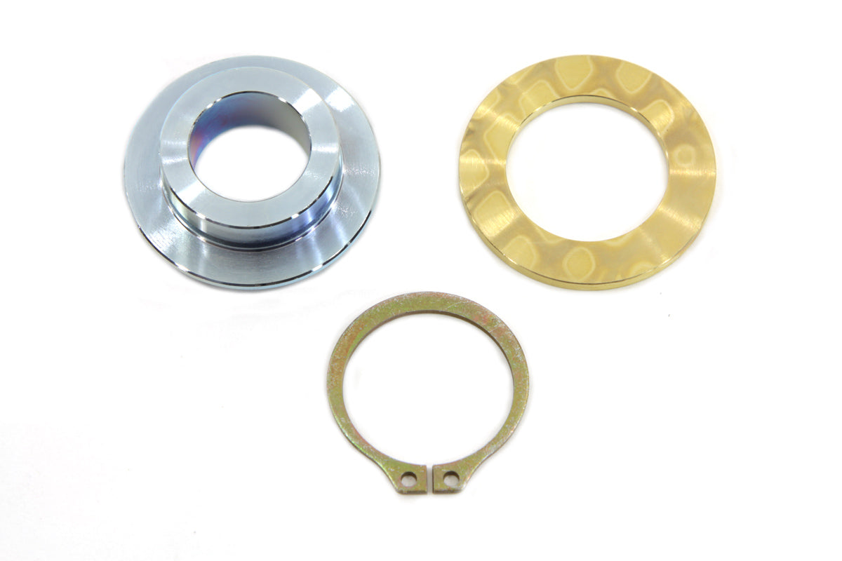 Front hub cap adapter spacer is zinc plated steel with a bronze thrust washer and snap ring included.