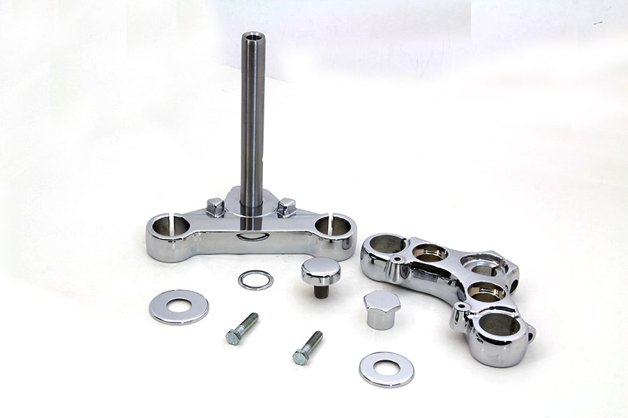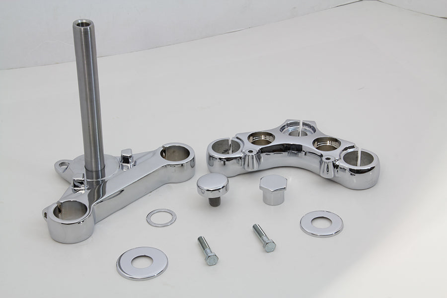 39mm FXR triple tree set includes a polished chrome top tree and a chrome steel lower tree.