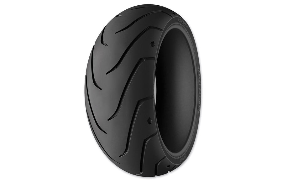 Michelin Scorcher II 150/60ZR17 rear radial blackwall tire is co-branded for Harley Davidson motorcyles.