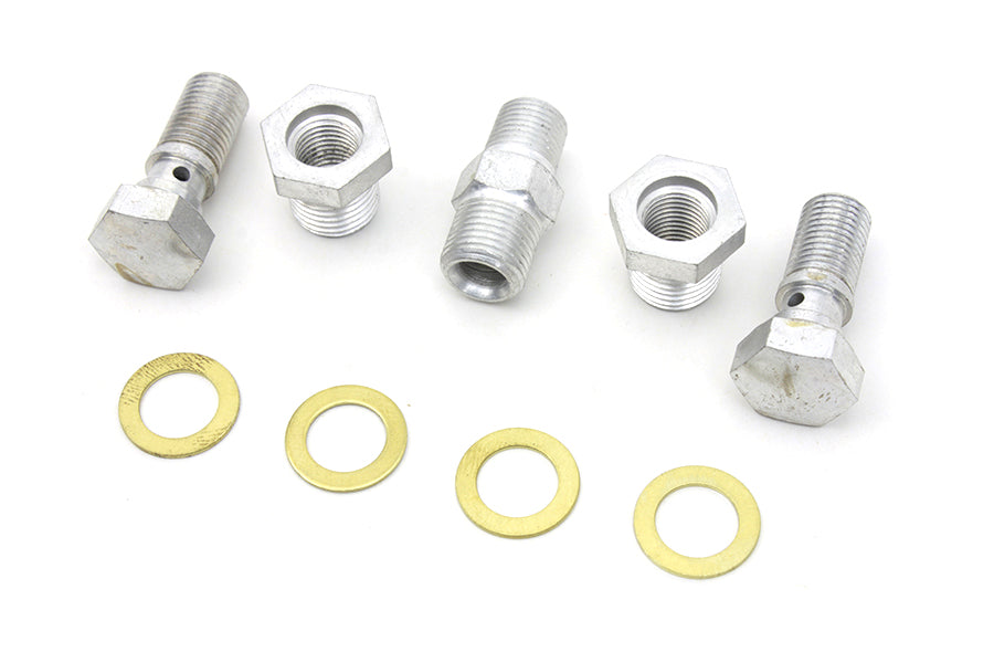 This 9 piece kit includes 2 banjo bolts, 4 washers, 2 reducer sleeves, and 1 nipple.