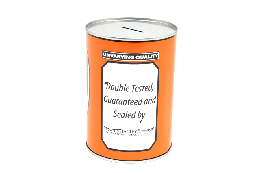 Novelty full quart size steel oil can bank with coin slot and full color lithographed early Oilzum graphic.
