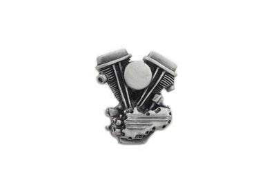 Panhead lapel pin with a stick pin clasp, silver patina.