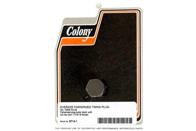 Timing and oil tank plug is oversize with a parkerized finish and features a 5/8 x 18 thread.