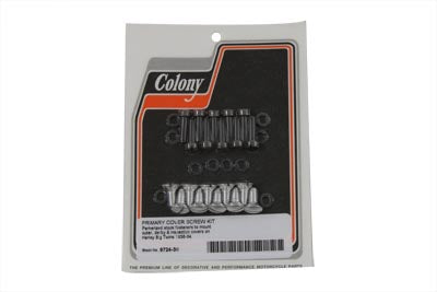 Primary cover screw with parkerized finish and cadmium plated derby cover screws with washers included.