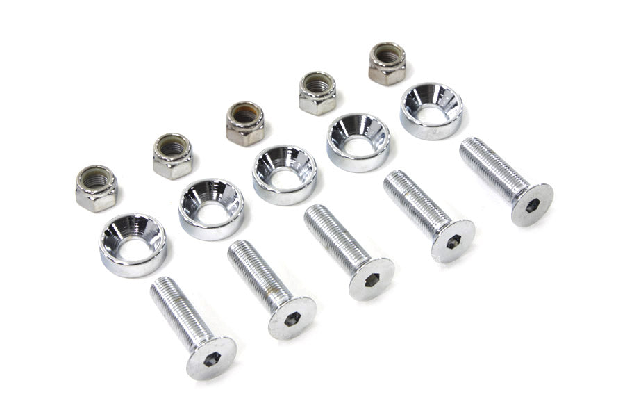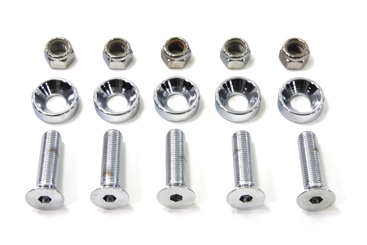 Chrome pulley bolt, nut and washer kit has a thread size of 7/16-20 X 1-1/2.
