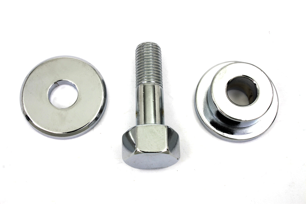Rear brake pivot washer and spacer kit includes spacer, washer and bolt in chrome.