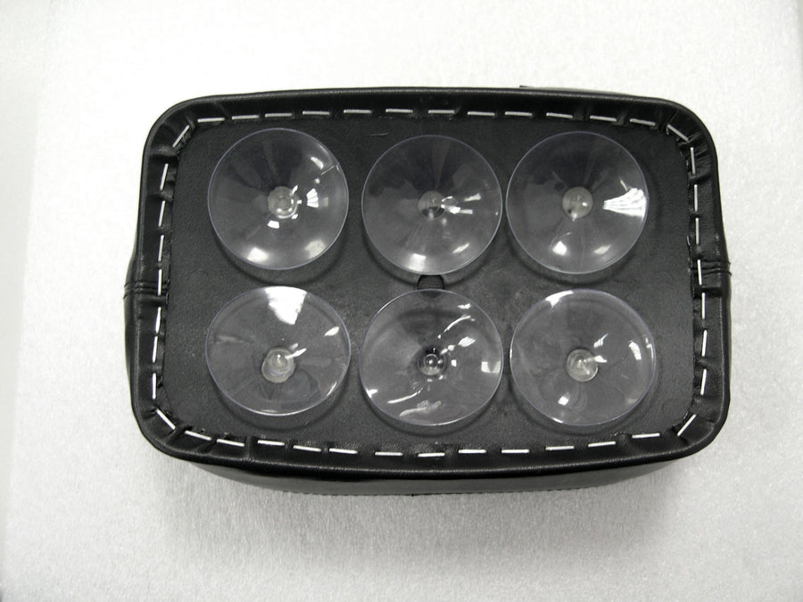 Black pillion rear seat pad includes six suction cups on underside to stick directly to rear fender.