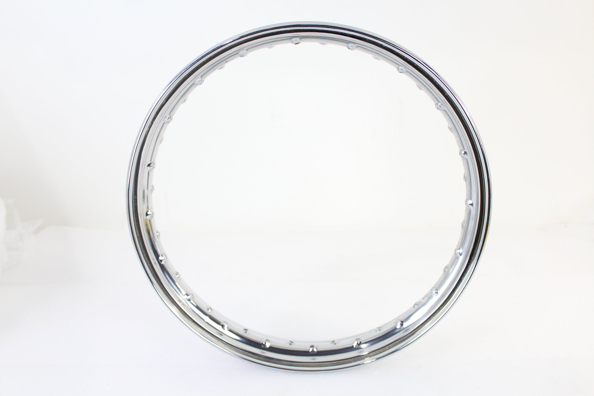 Replica chrome front or rear 18" X 3.15" steel wheel rim features conventional bead construction for front or rear 45" models.