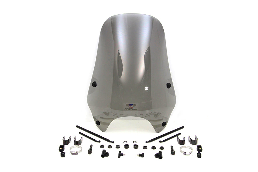 National cycle medium tint polycarbonate streetshield features u-clamp mounting for 1" handlebars.