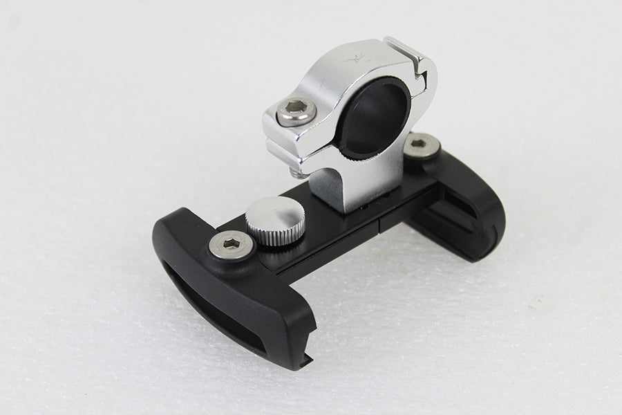 Put your smartphone within easy reach. This standard cradle places your phone or music device close to the hand controls of the motorcycle for easy access. Cell phone mount is made up of black ABS construction. Fits 7/8" & 1" handlebars.