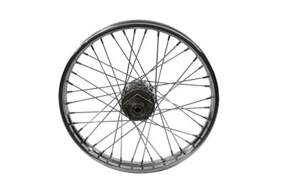 Replica 21" X 1.85" wheel assembly features chrome rim, 40 chrome spokes, chrome hub with internals.