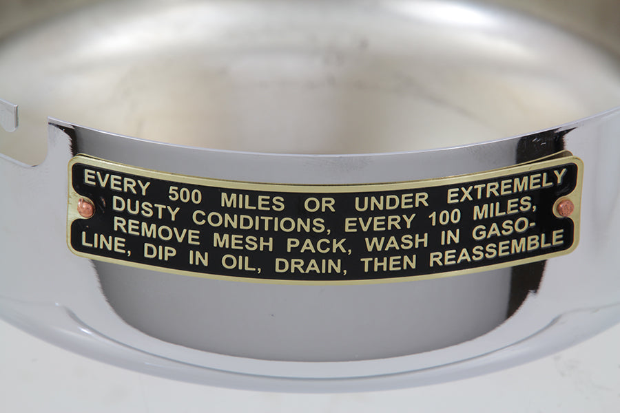 6" chrome air cleaner cover to be used with j-slot backing plate.