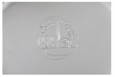 J-Slot 7" air cleaner features detailed embossed 1940 "New York World's Fair" logo on cover.