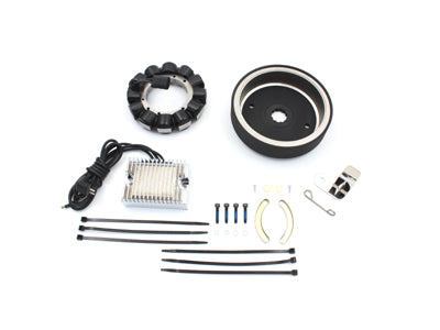 Alternator charging system kit includes molded stator, chrome regulator, and rotor with stainless liner to seal magnets in place.