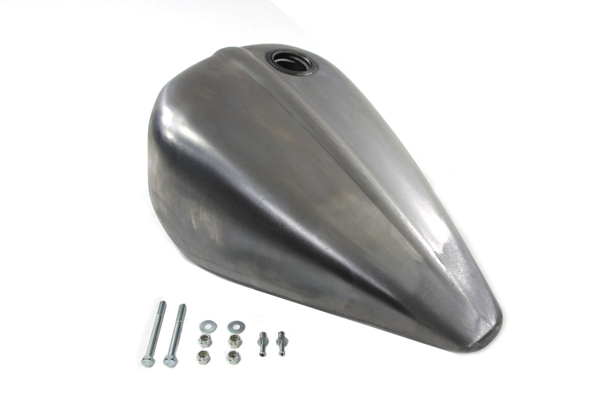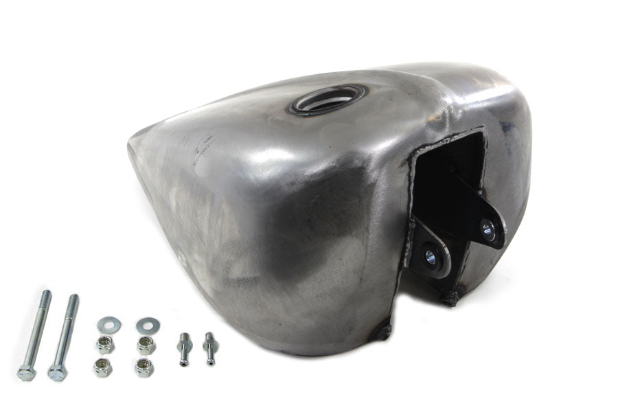 Bobbed gas tank accepts a left side petcock and has a fuel capacity of 2.3 gallons.