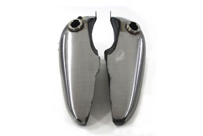 Bobbed gas tank set features provisions to accept early caps , reserve shut off rod, and two or three light dash.