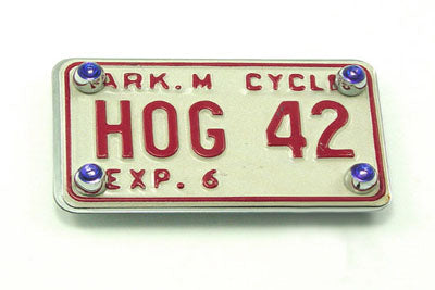 Chrome krommets with 12 volt clear bulb and blue lens to attach license plates and accessories.