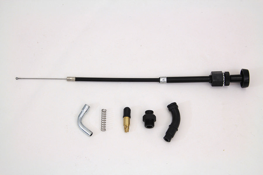 Choke cable assembly includes the cable, cable guide, sealing cap, starter valve, starter cap, and enrichment spring.