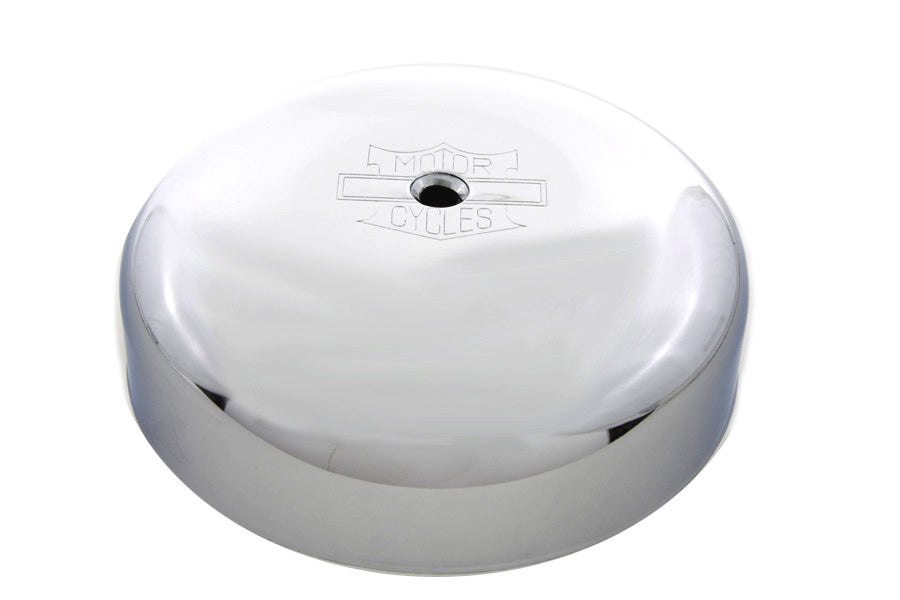 Chrome 7" round air cleaner cover features shield logo is for CV carburetor.