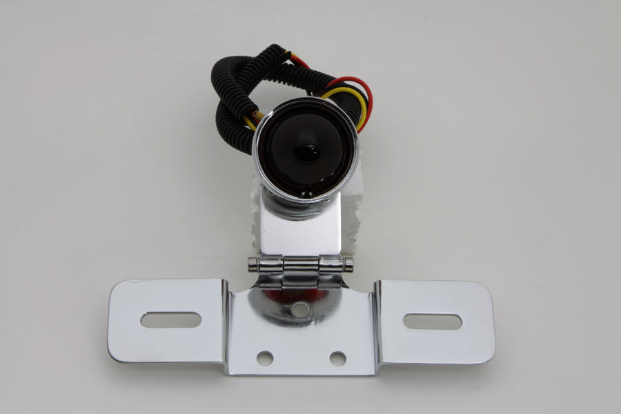 Round style tail lamp with glass lens, 12 volt bulb, and chrome bracket.