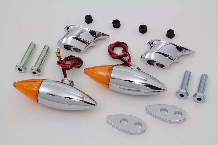 Chrome torpedo bullet style marker lamp set.