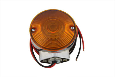 Rear dual filament signal chrome with amber lens, 12 volt bulb and mounting screws.