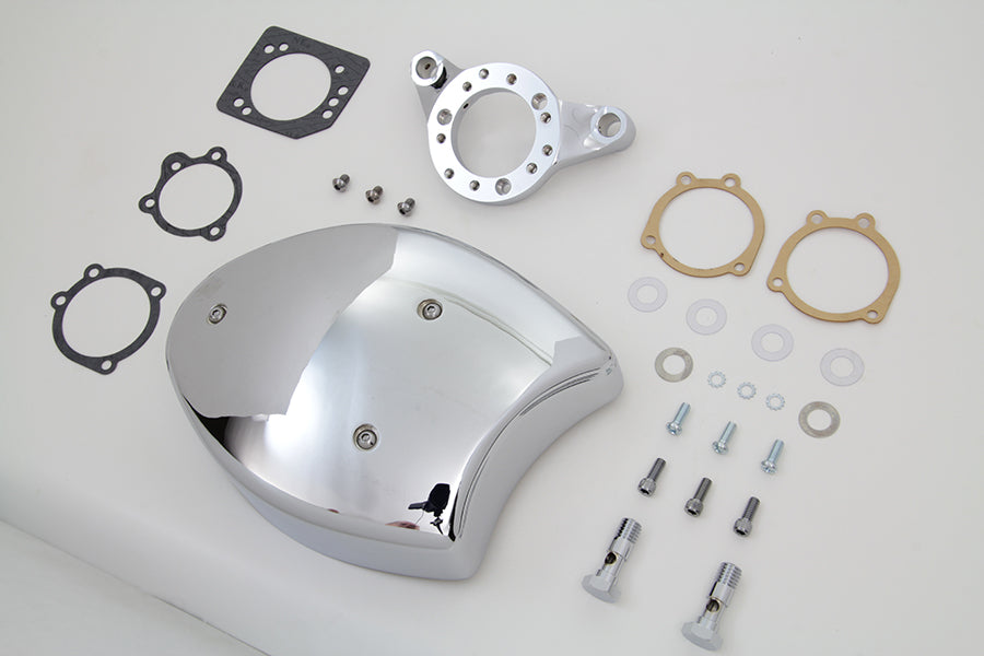 Wyatt Gatling assembly includes chrome air cleaner with scoop shaped cover, integral breather system with bracket and mounting kit.