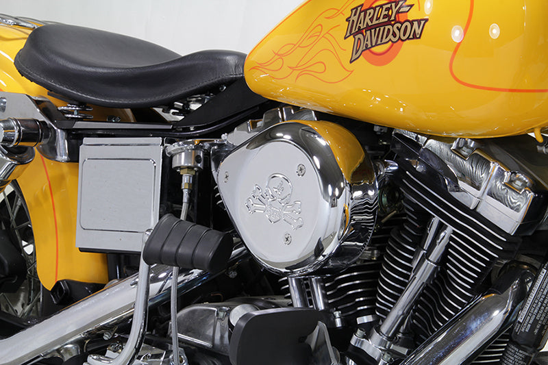 Wyatt Gatling assembly includes teardrop air cleaner with chrome skull style cover, integral breather system with bracket and mounting kit.