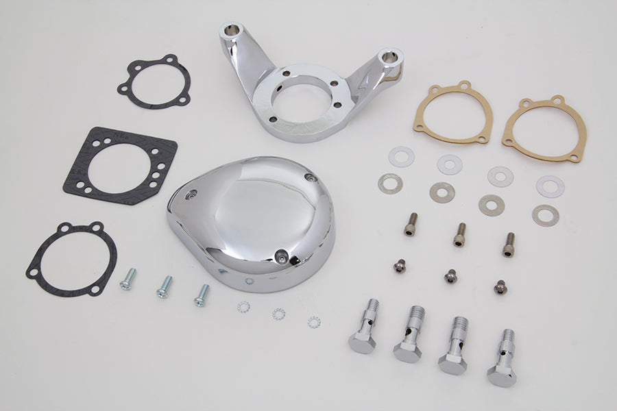Wyatt Gatling assembly includes chrome teardrop air cleaner with smooth cover, integral breather system with bracket and mounting kit.
