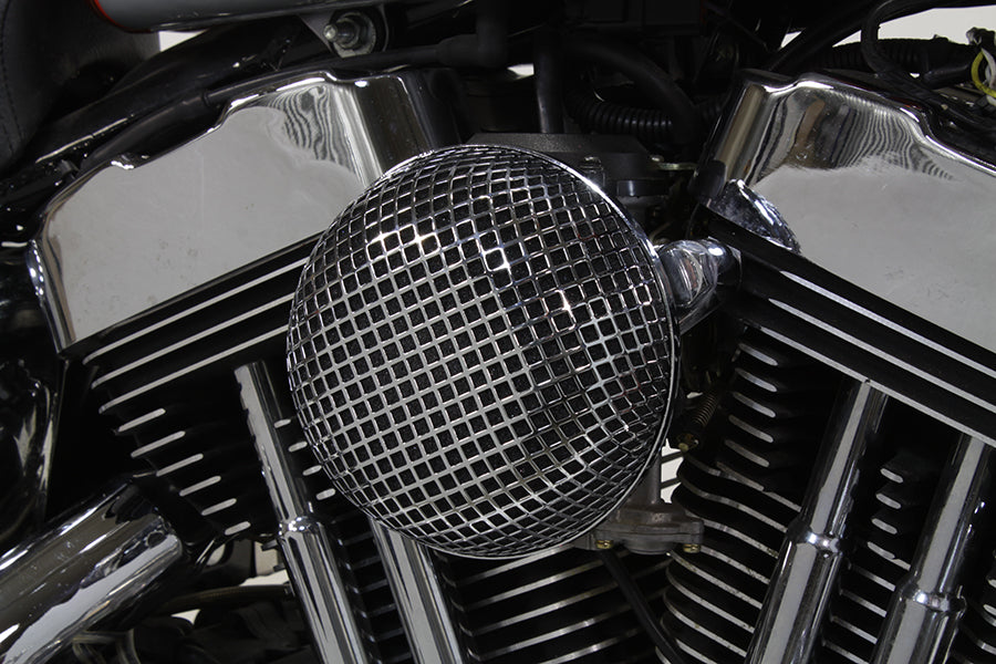 Wyatt Gatling assembly includes round air cleaner with chrome mesh cover, integral breather system with bracket, and mounting kit.