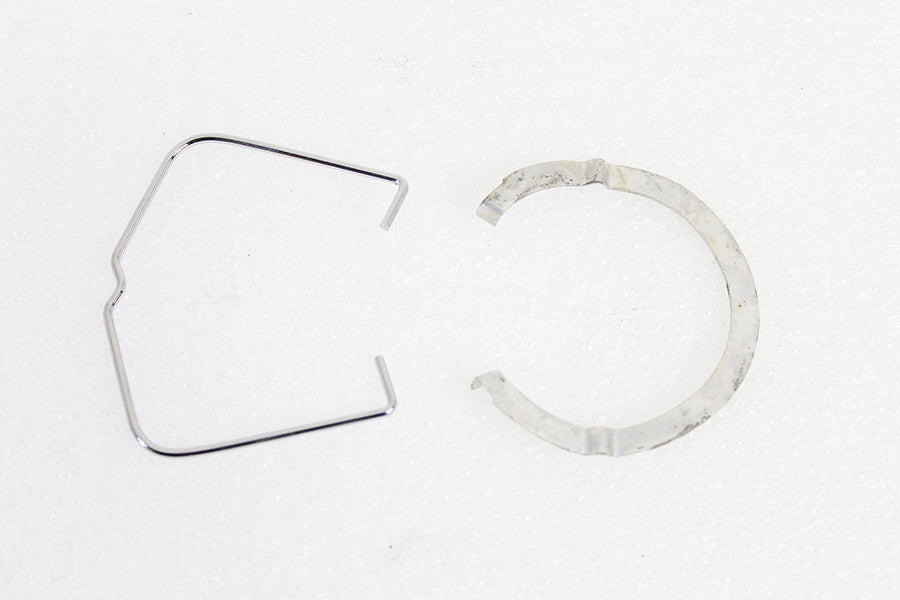 Distributor retaining ring and clip kit includes a chrome cover clip and a zinc retaining ring.